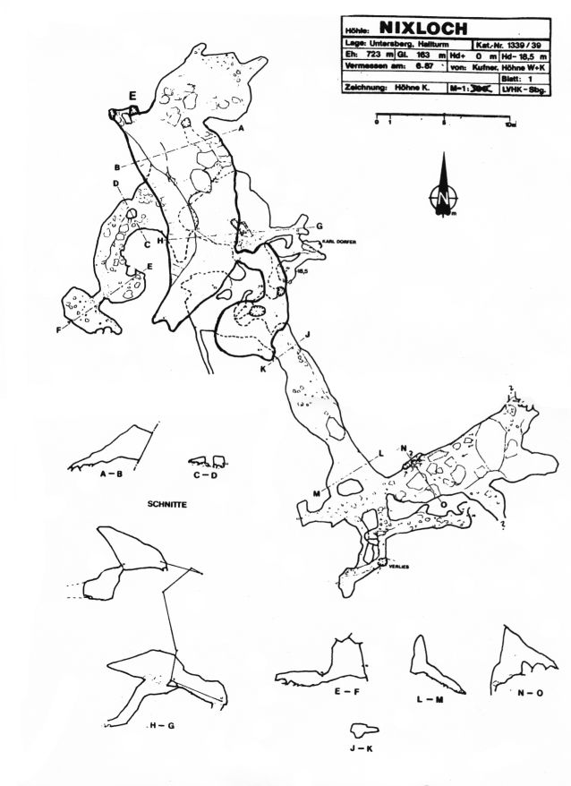Ein alter Plan eines unbekannten Höhlenforschers zeichnet das Nixloch folgendermaßen: